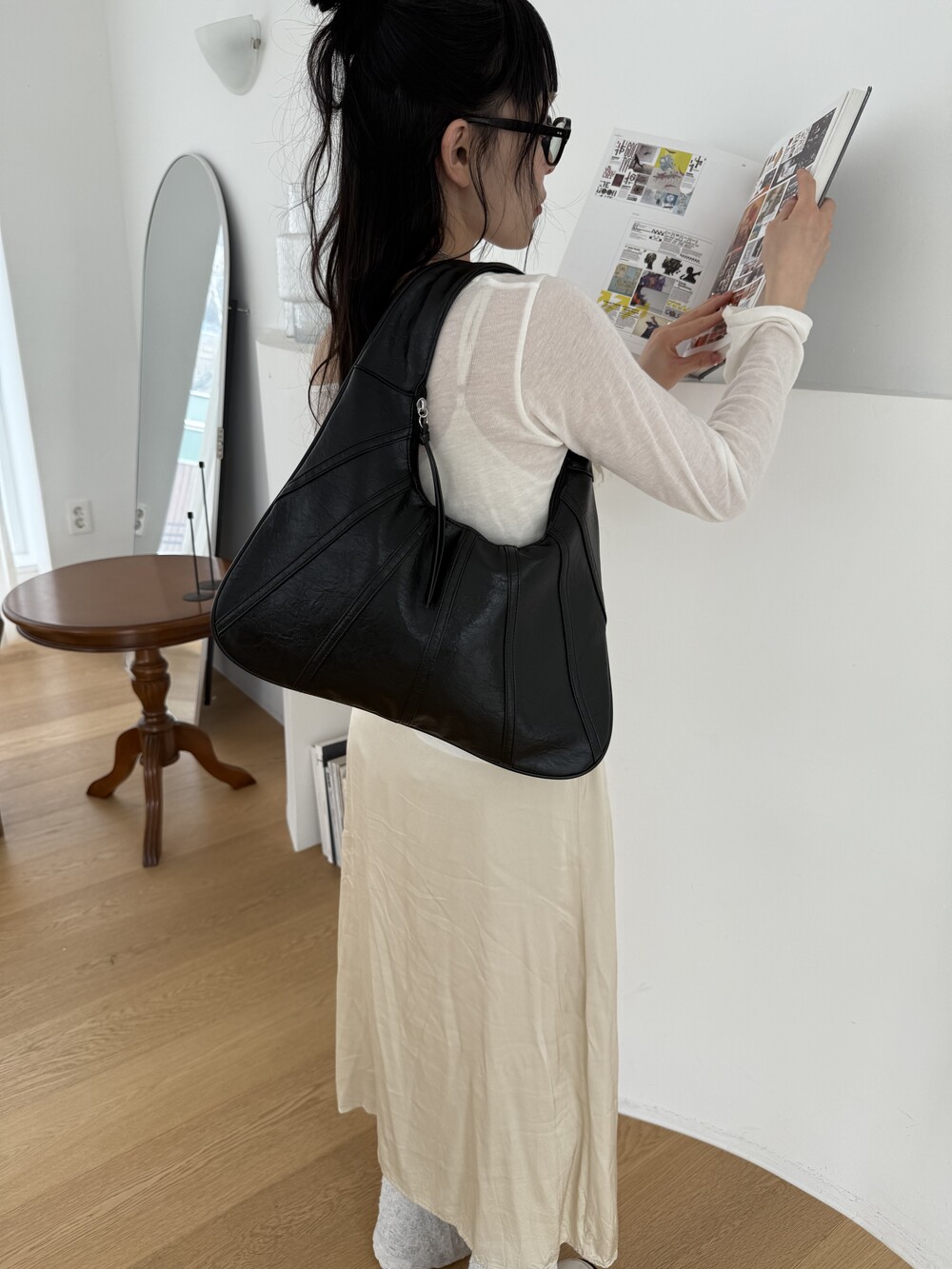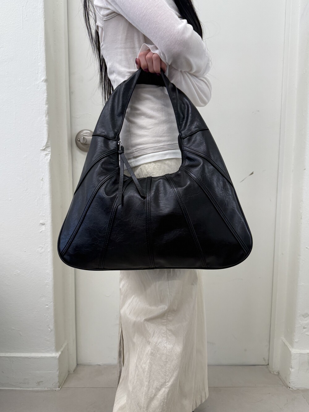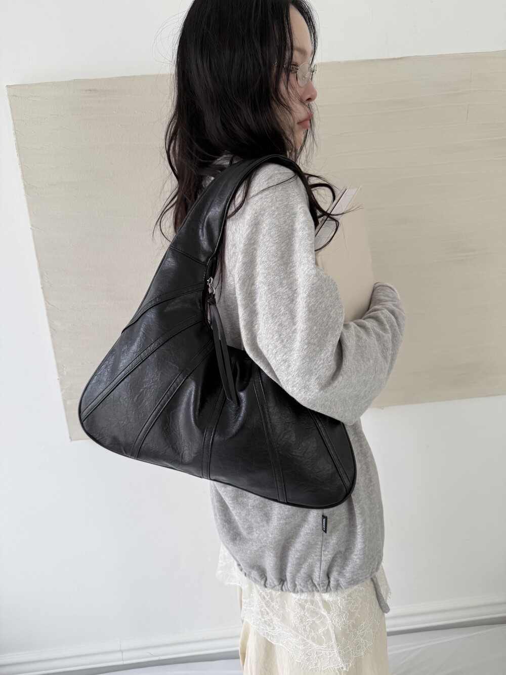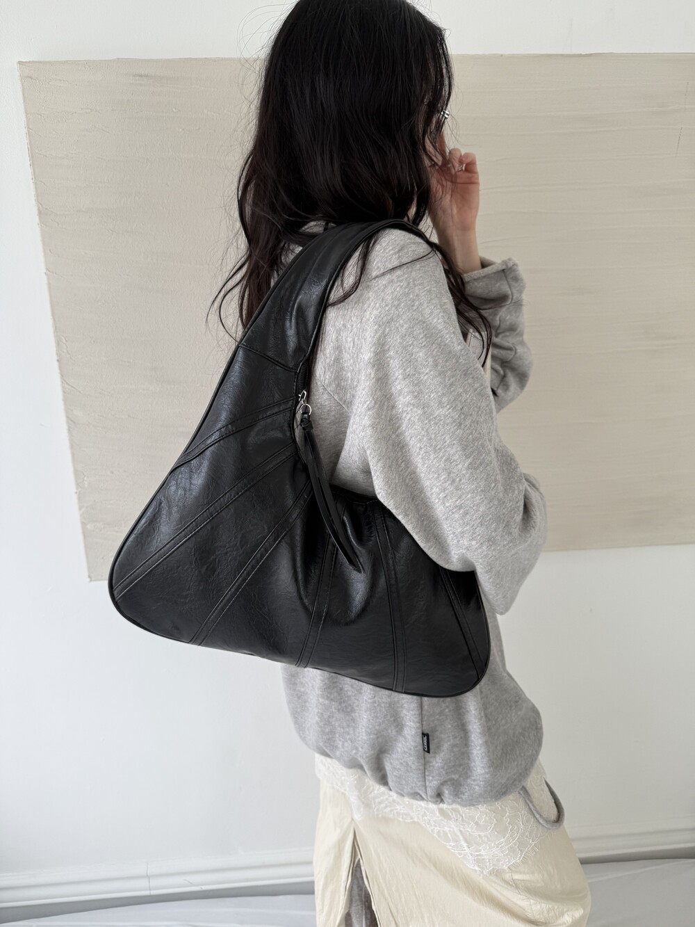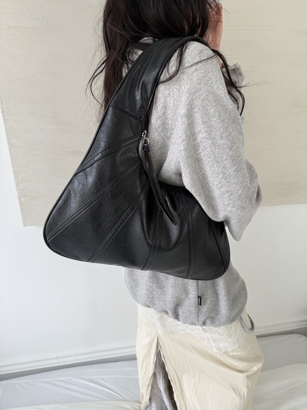 Point 1. 부드러운 터치감을 자랑하는 가죽 소재를 사용해 유연한 착용감을 주지만, 가방 전체의 쉐입은 탄탄하게 잡아주어 흐트러짐 없는 실루엣을 완성합니다.
