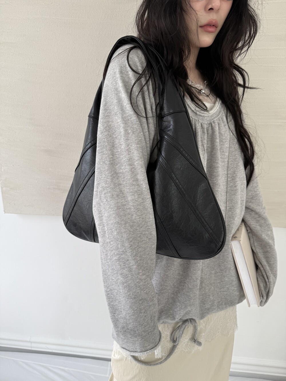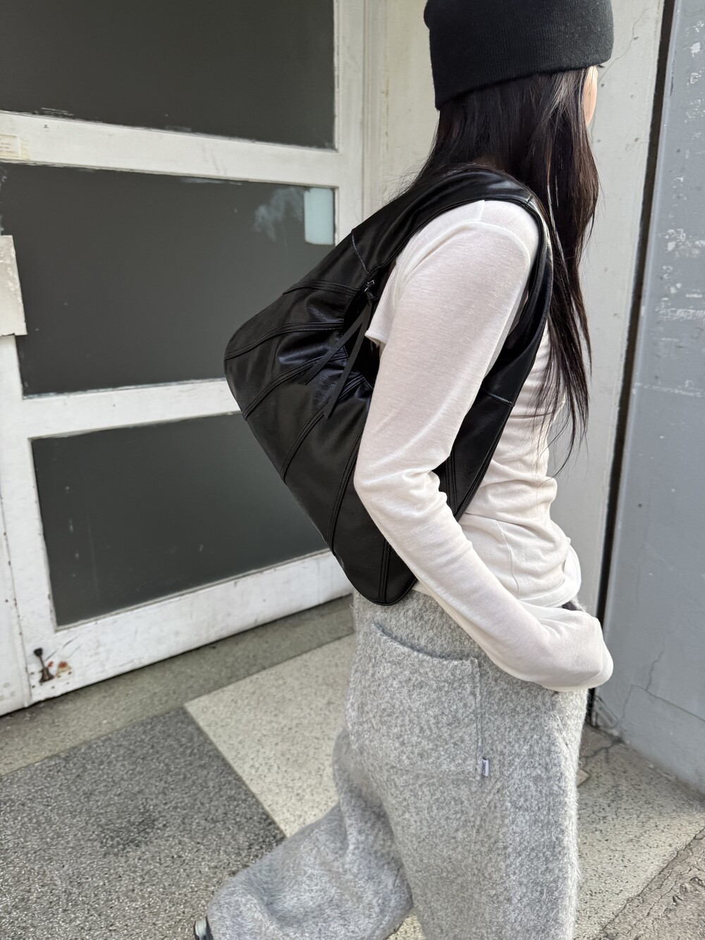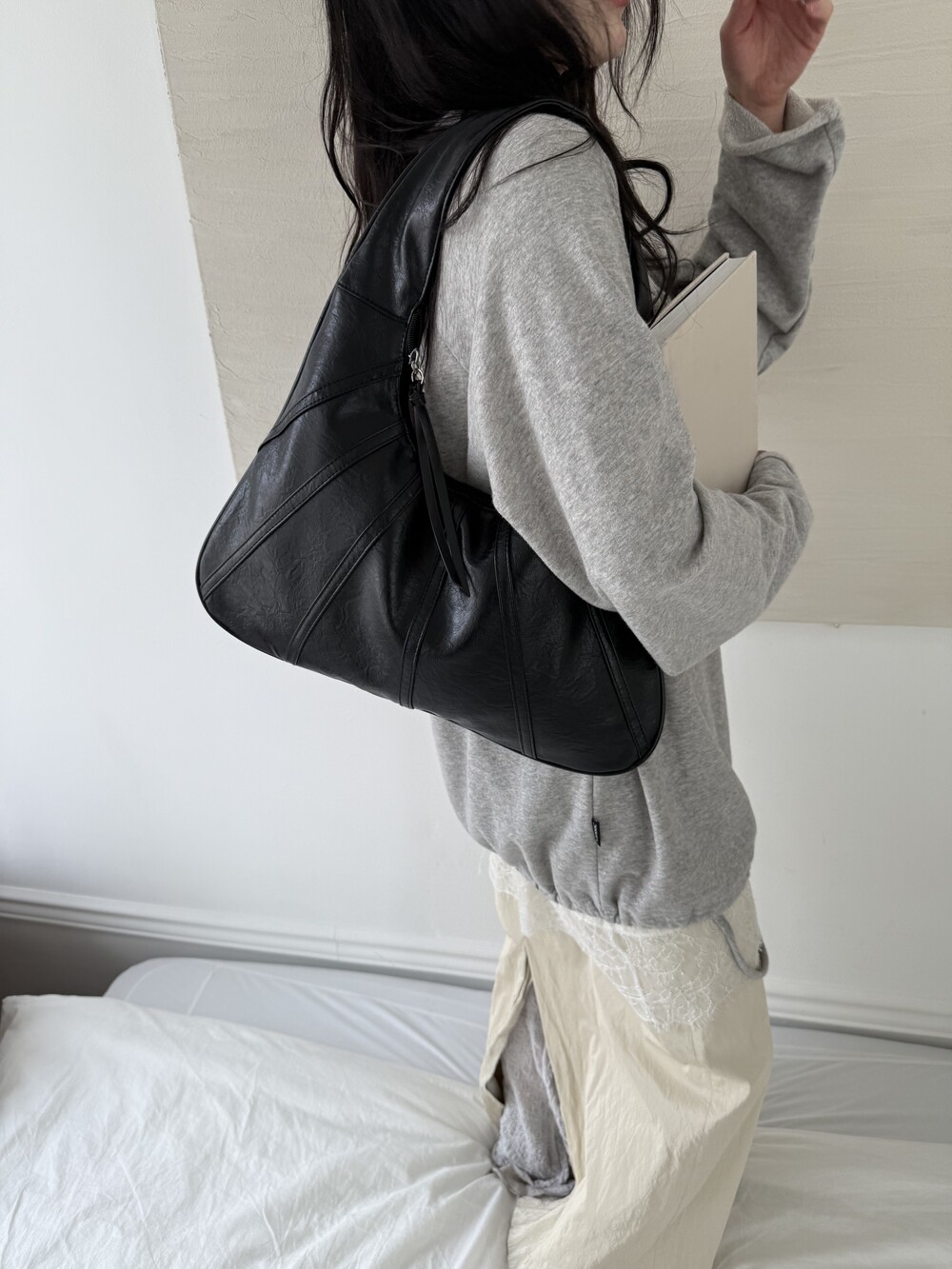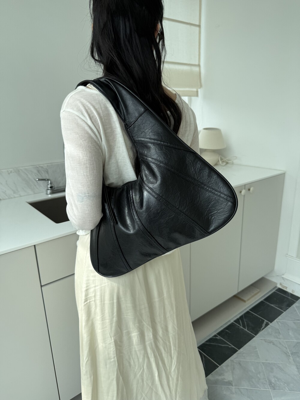 Point 1. 부드러운 터치감을 자랑하는 가죽 소재를 사용해 유연한 착용감을 주지만, 가방 전체의 쉐입은 탄탄하게 잡아주어 흐트러짐 없는 실루엣을 완성합니다.