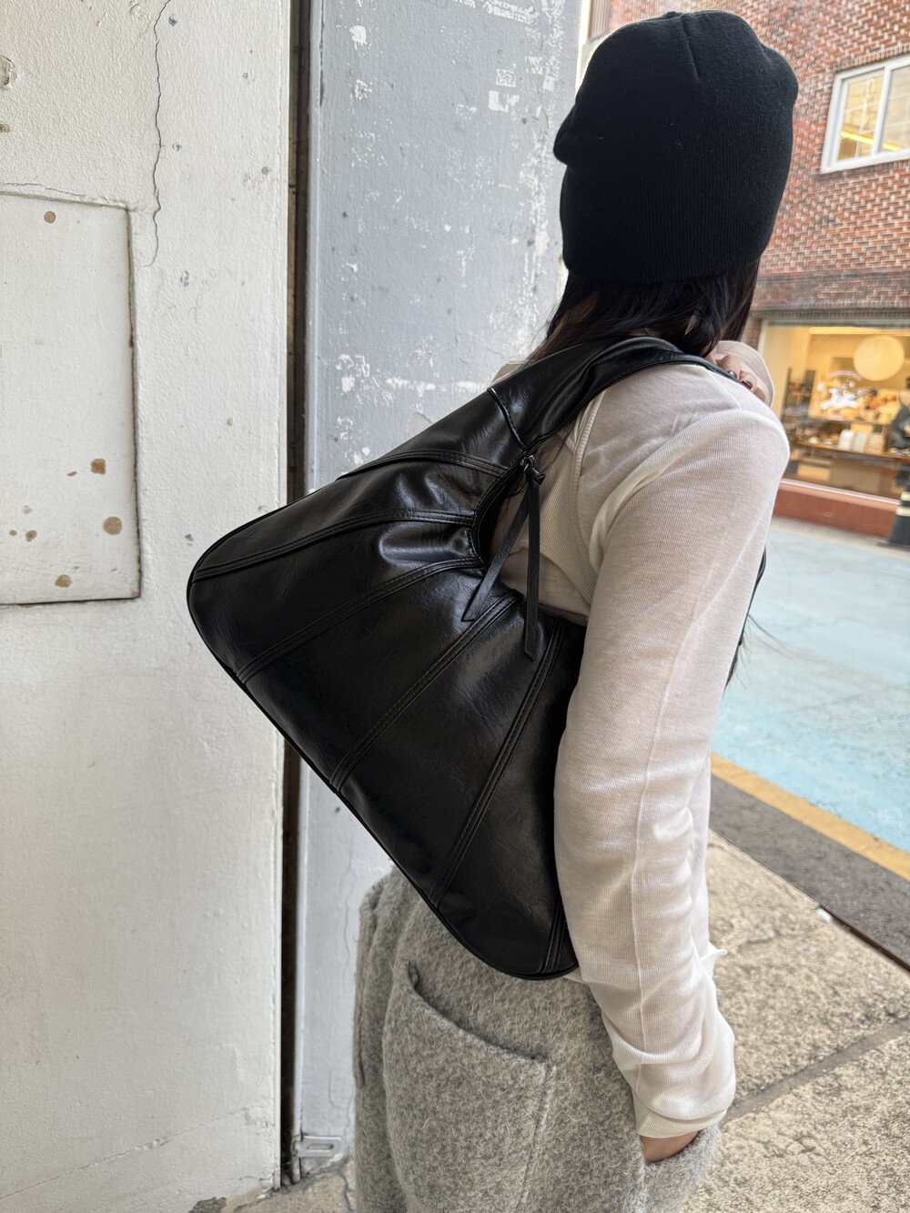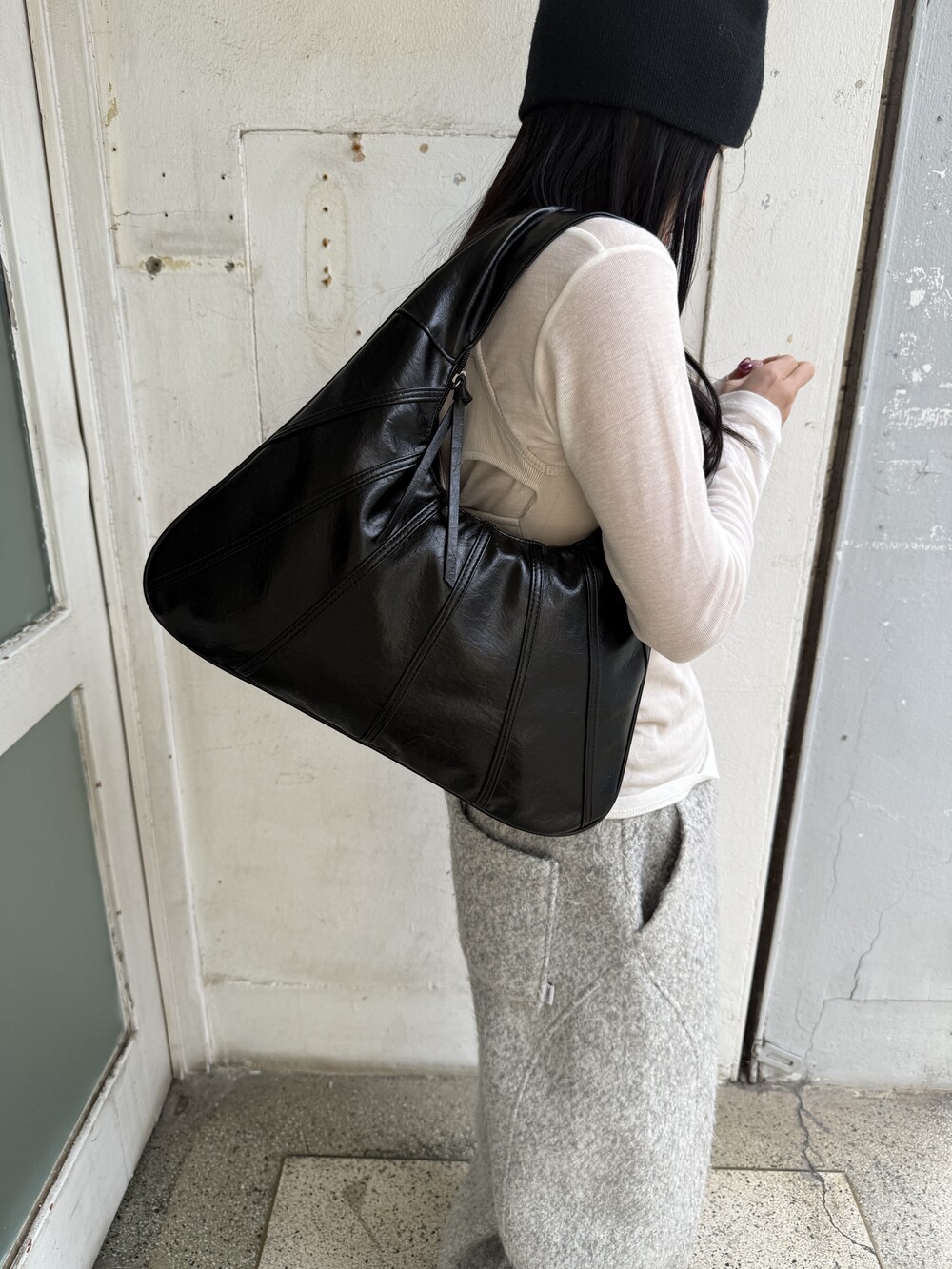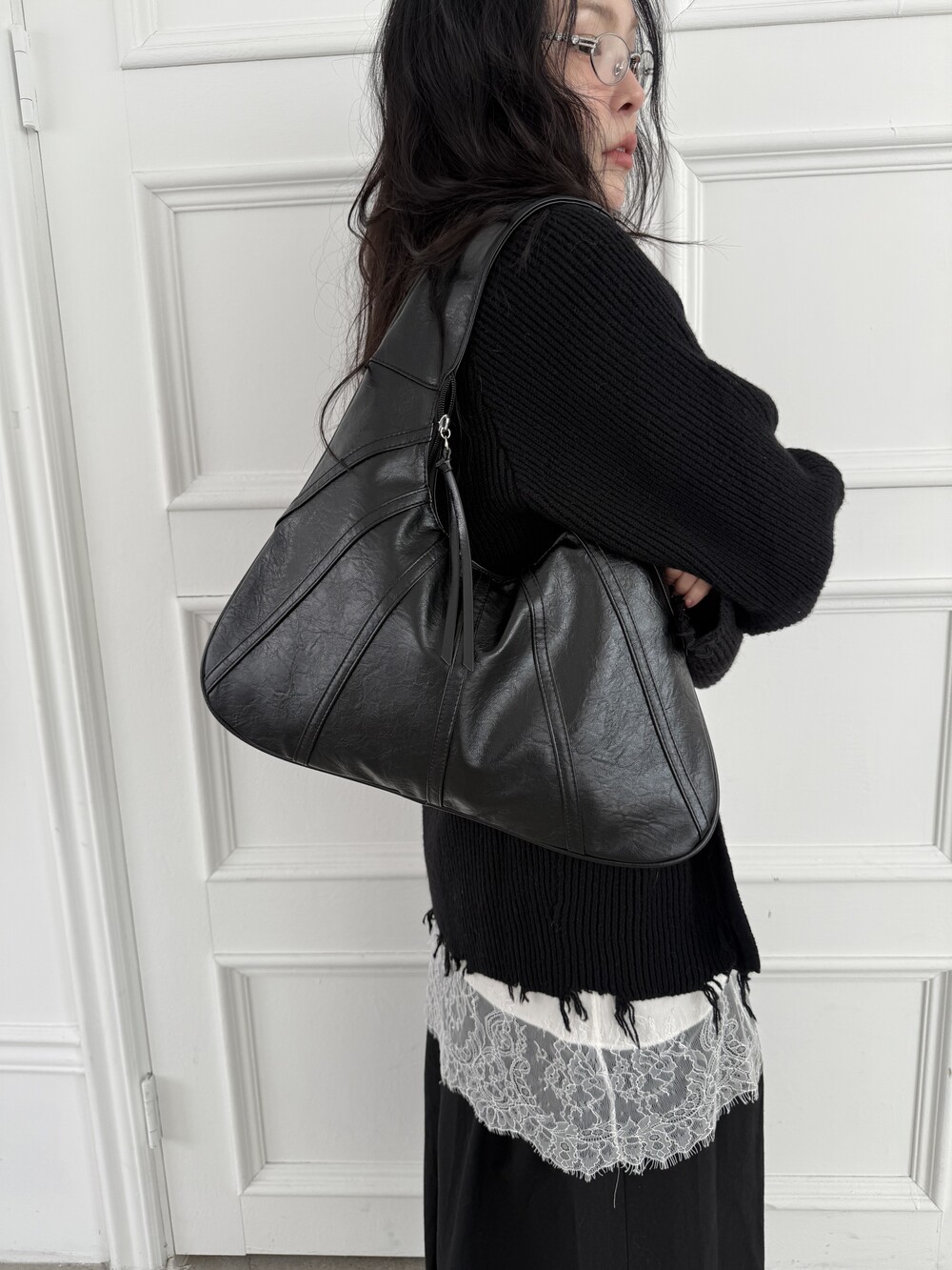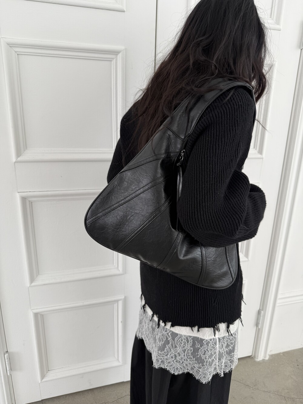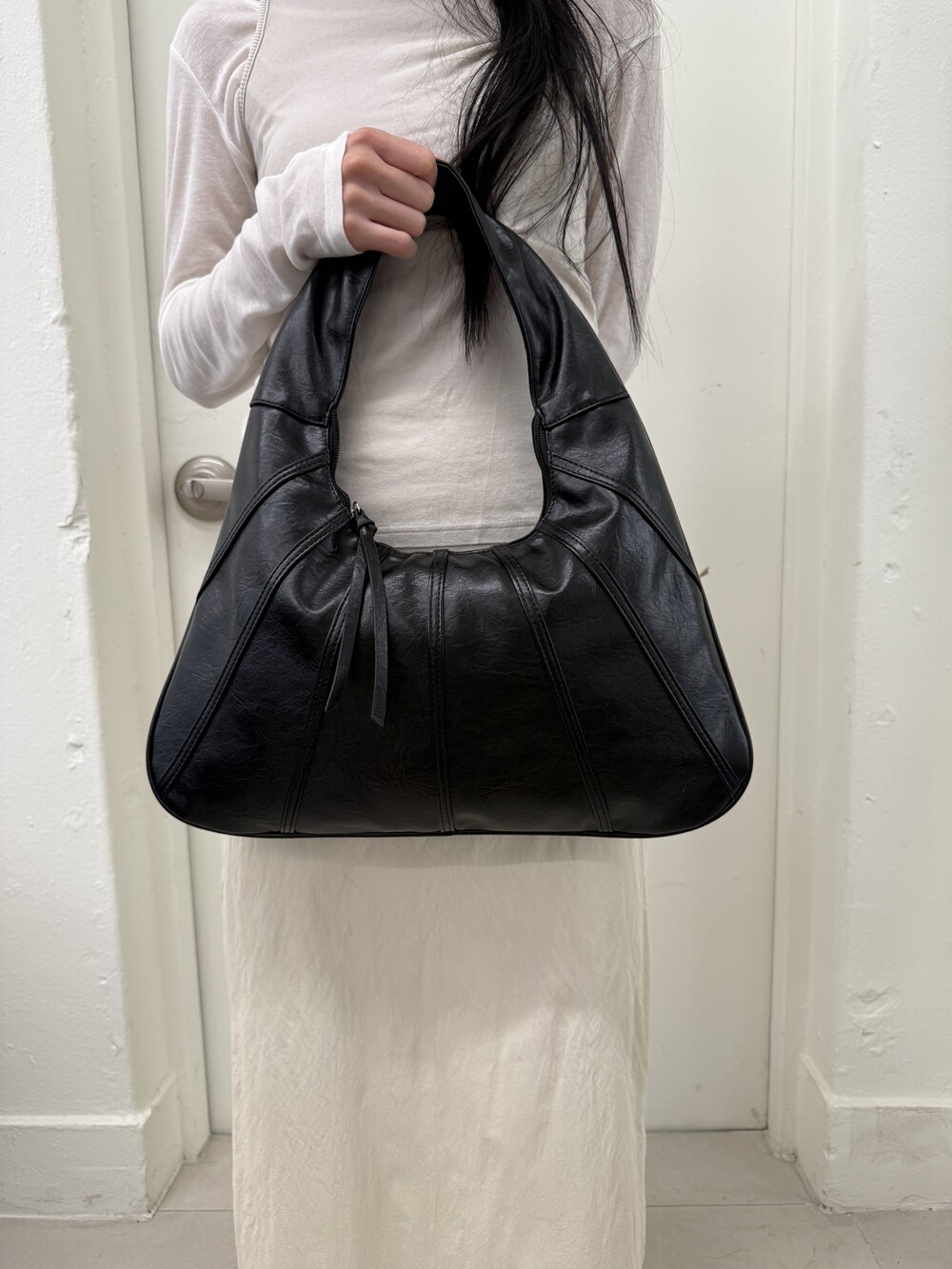 Point 1. 부드러운 터치감을 자랑하는 가죽 소재를 사용해 유연한 착용감을 주지만, 가방 전체의 쉐입은 탄탄하게 잡아주어 흐트러짐 없는 실루엣을 완성합니다.