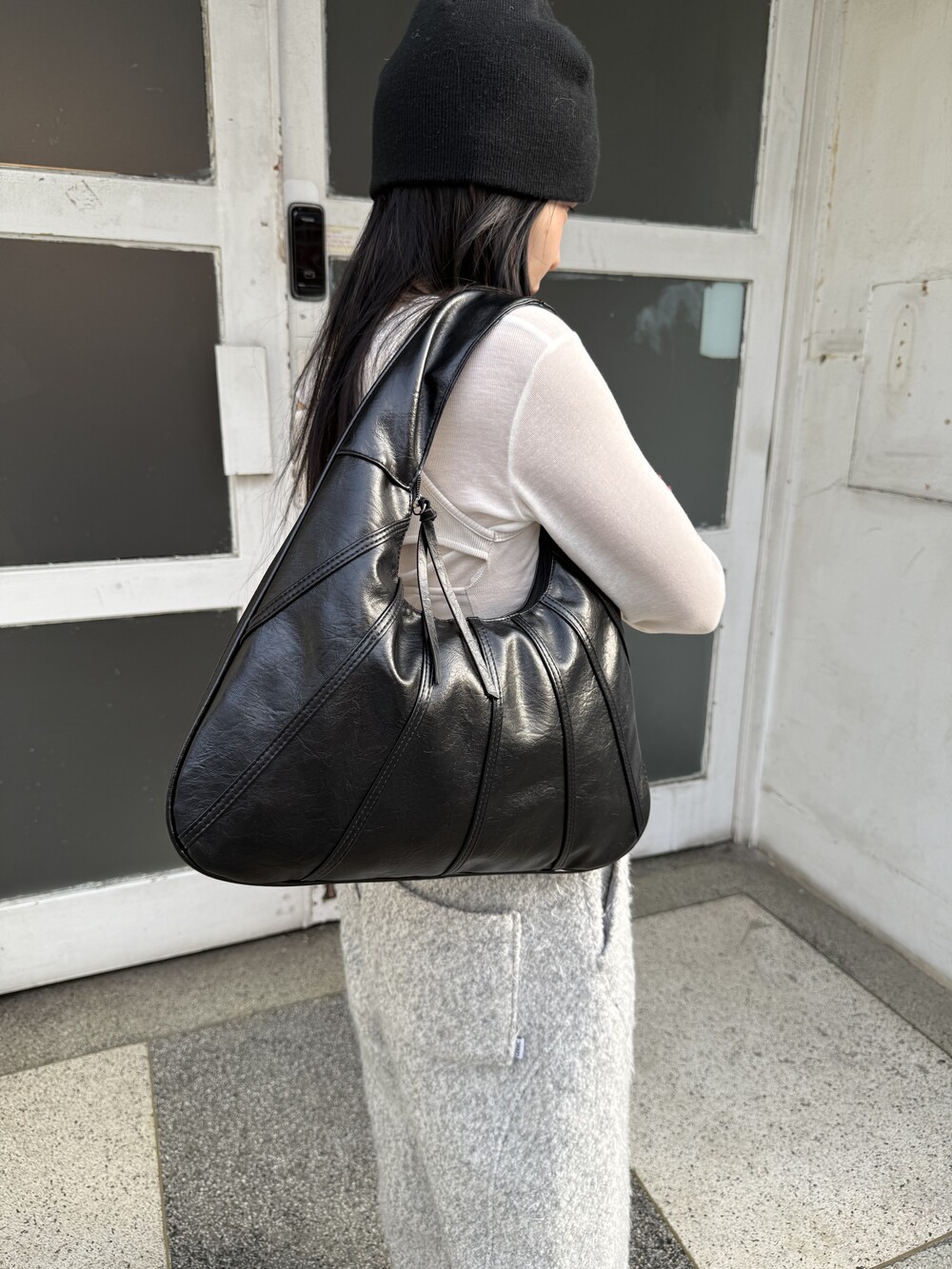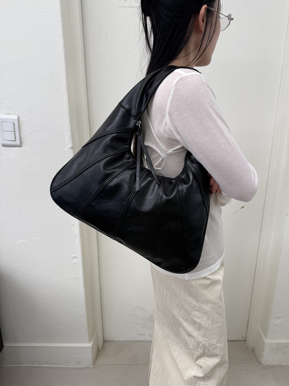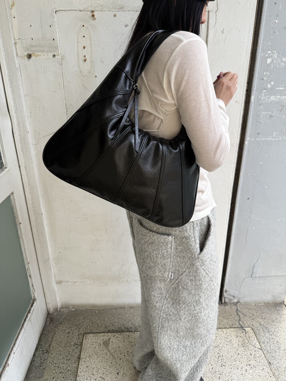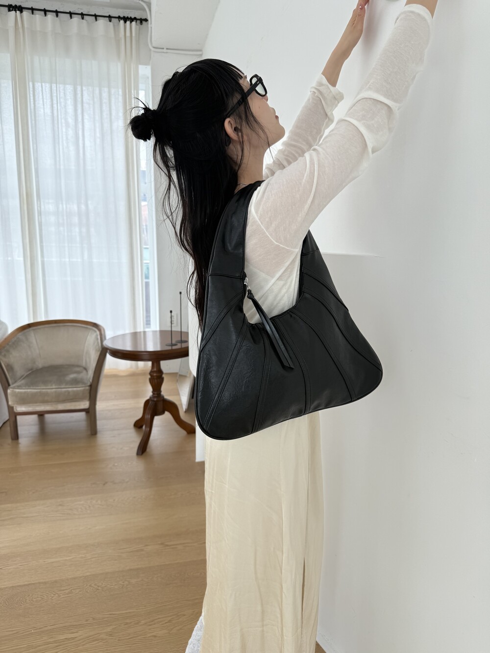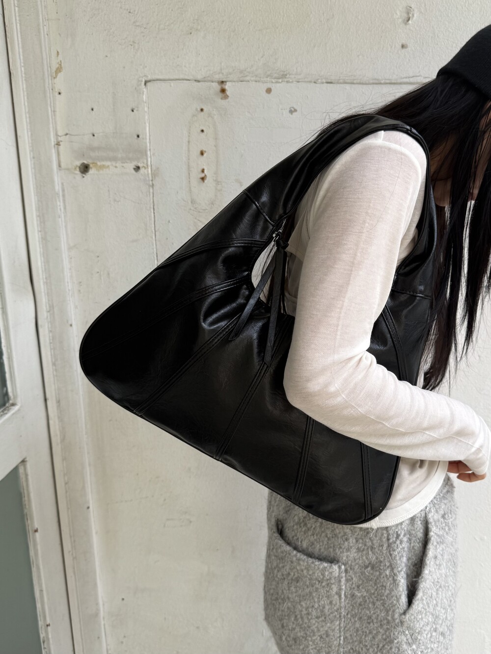 Point 1. 부드러운 터치감을 자랑하는 가죽 소재를 사용해 유연한 착용감을 주지만, 가방 전체의 쉐입은 탄탄하게 잡아주어 흐트러짐 없는 실루엣을 완성합니다.