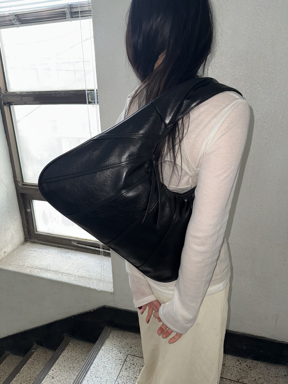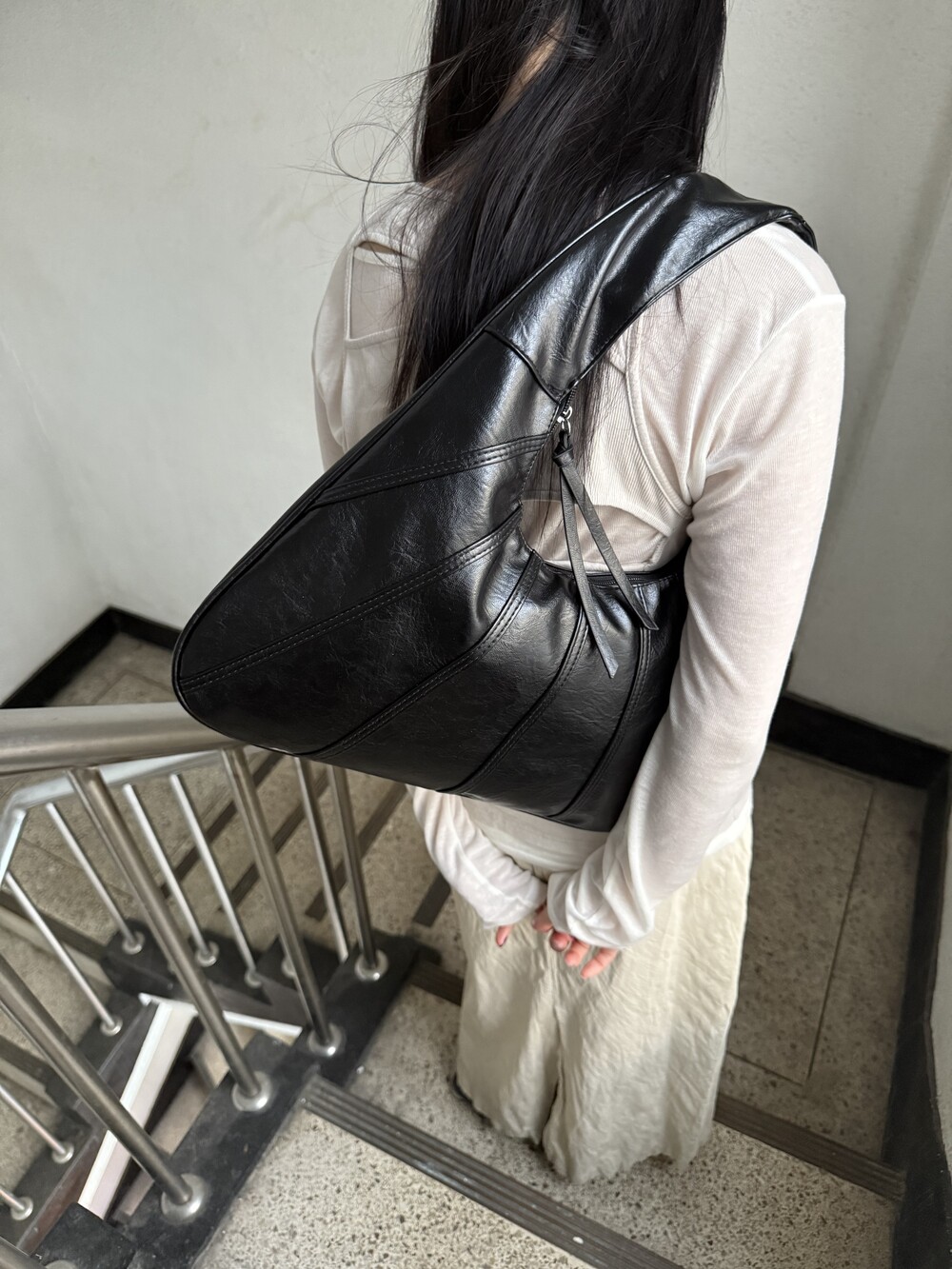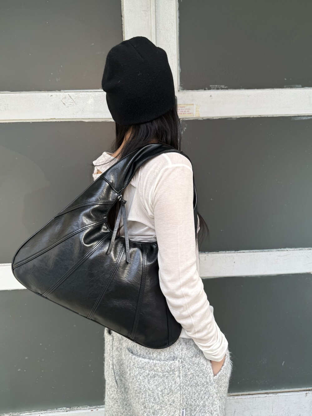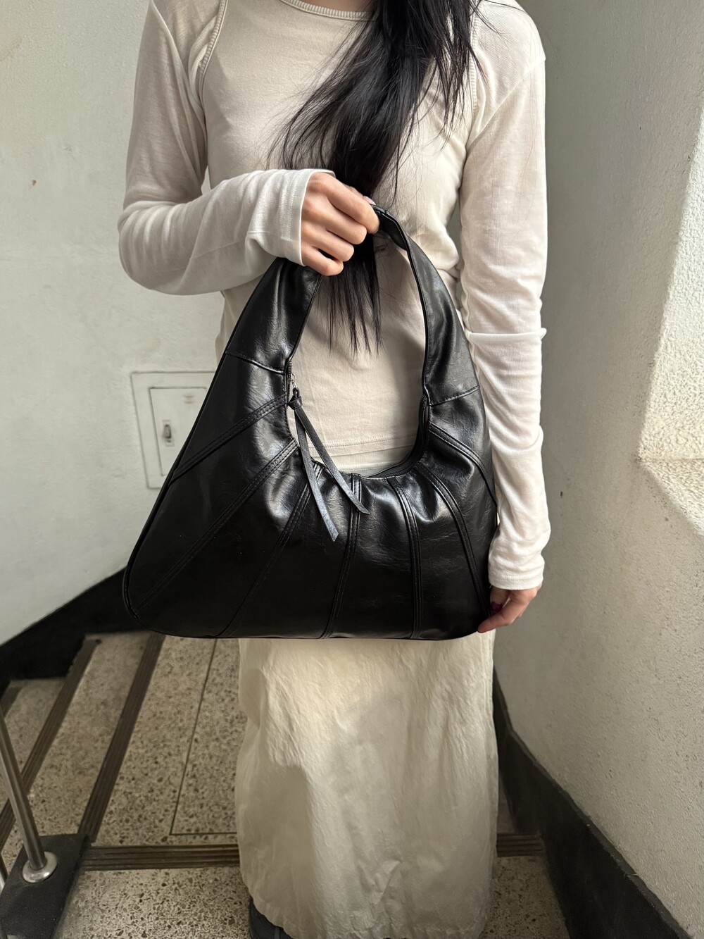 Point 1. 부드러운 터치감을 자랑하는 가죽 소재를 사용해 유연한 착용감을 주지만, 가방 전체의 쉐입은 탄탄하게 잡아주어 흐트러짐 없는 실루엣을 완성합니다.