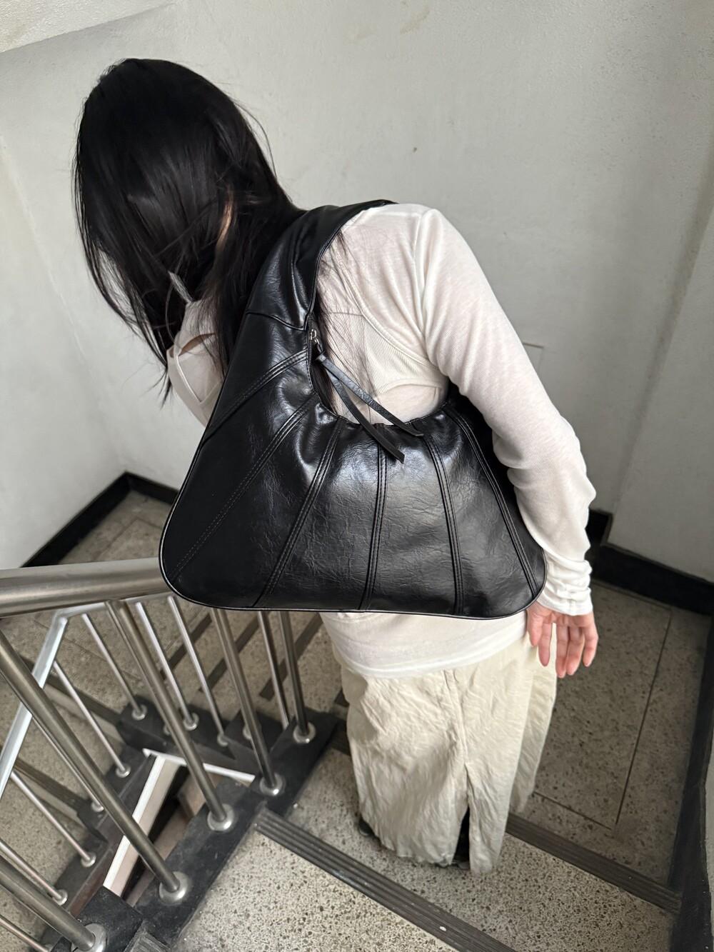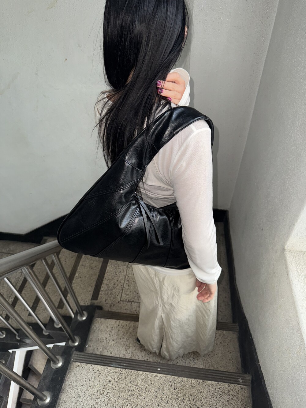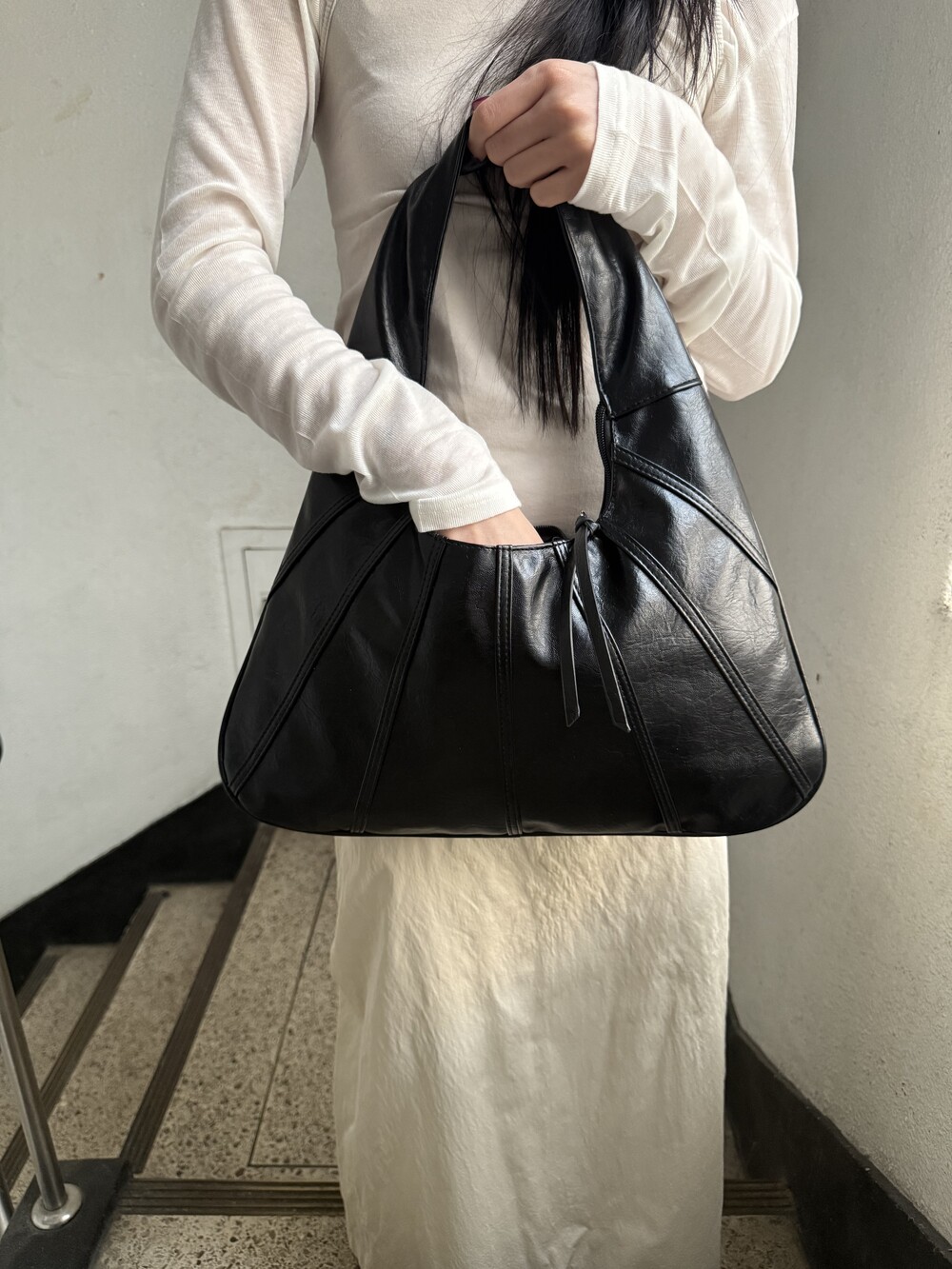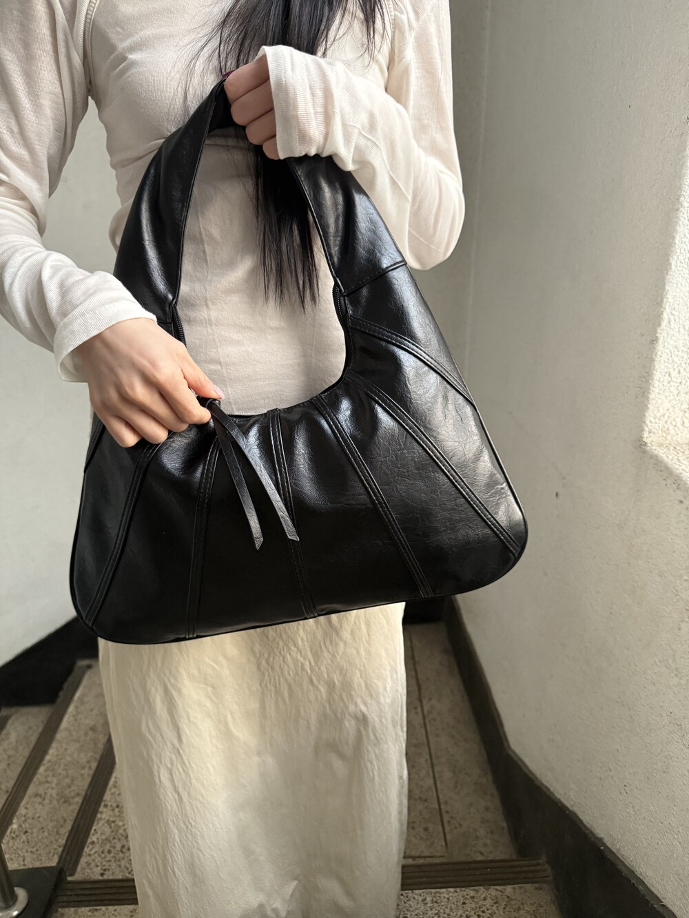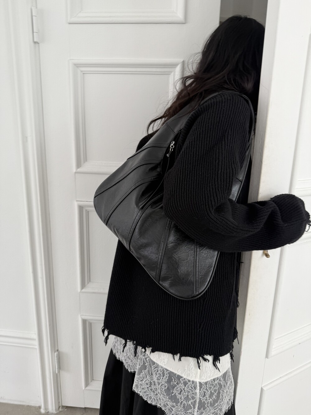 Point 1. 부드러운 터치감을 자랑하는 가죽 소재를 사용해 유연한 착용감을 주지만, 가방 전체의 쉐입은 탄탄하게 잡아주어 흐트러짐 없는 실루엣을 완성합니다.