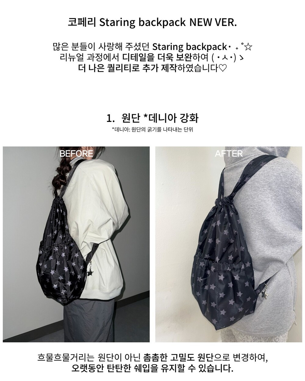 - 제작 과정상 일부 실밥이 발생할 수 있으며, 이는 불량이 아니므로 교환 및 반품 사유에 해당하지 않습니다.
