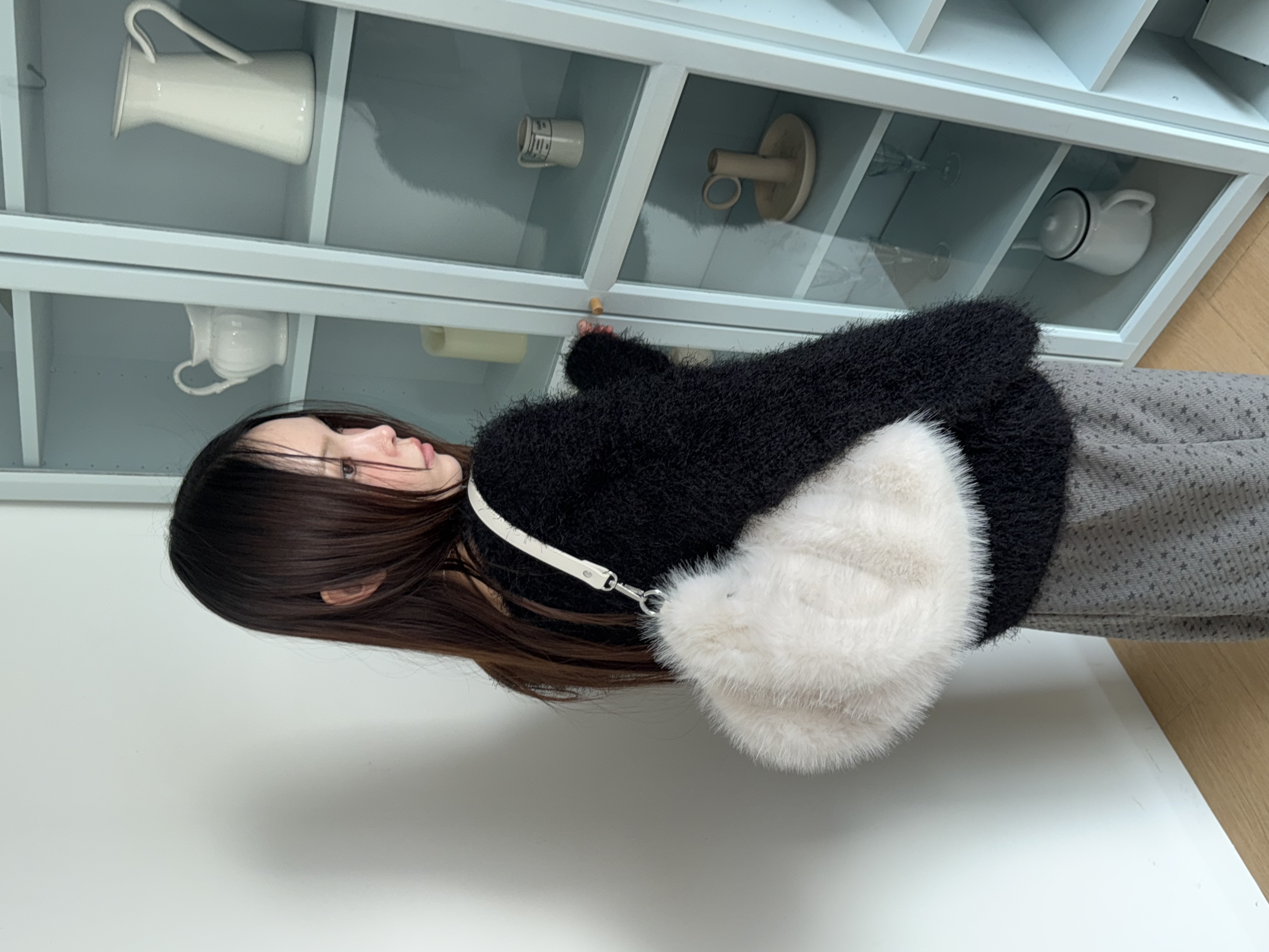 여분의 크로스백 끈을 제공해드려 원하는 길이에 맞게 묶어서 크로스백으로 연출 가능한 제품입니다:)