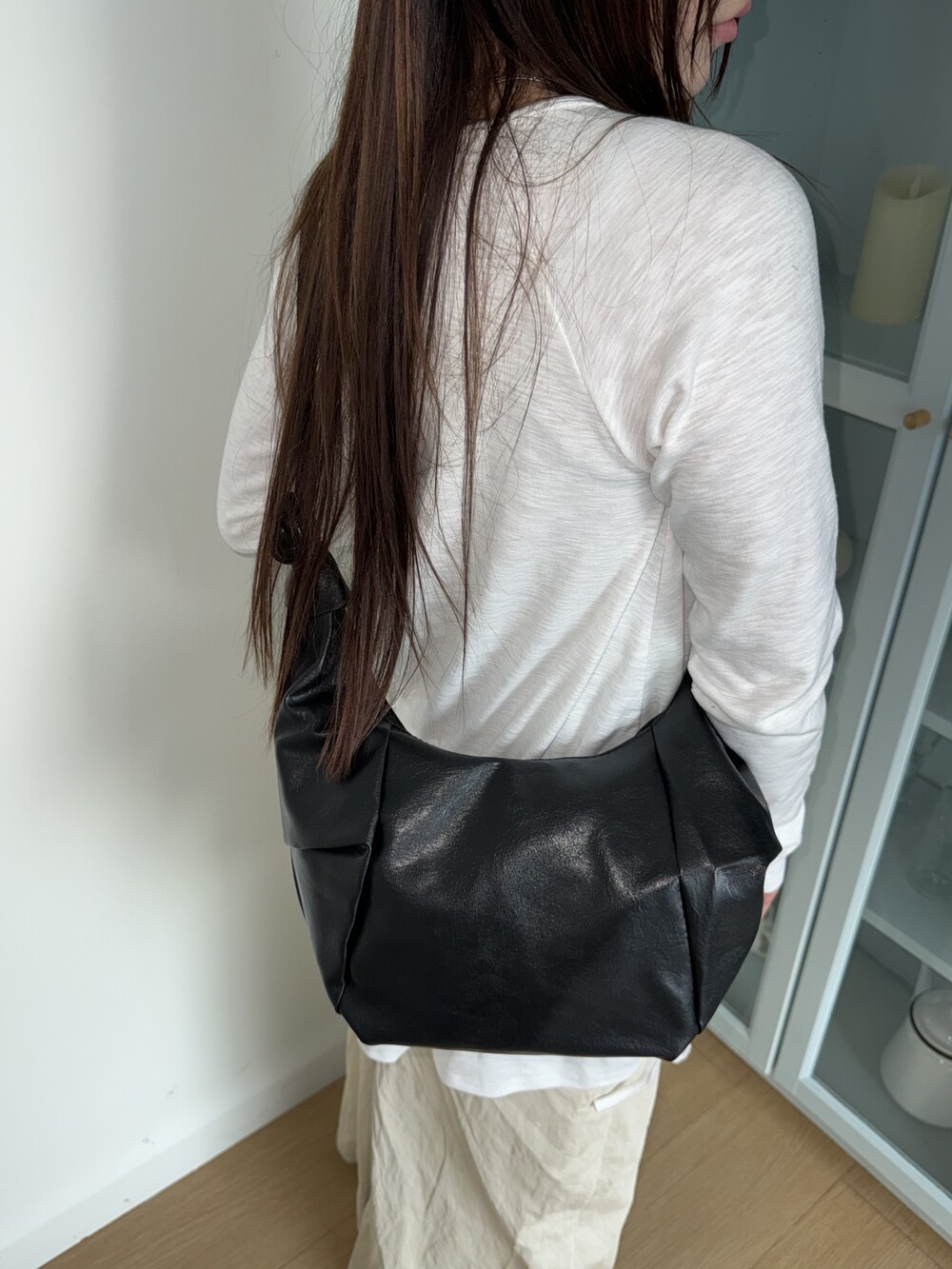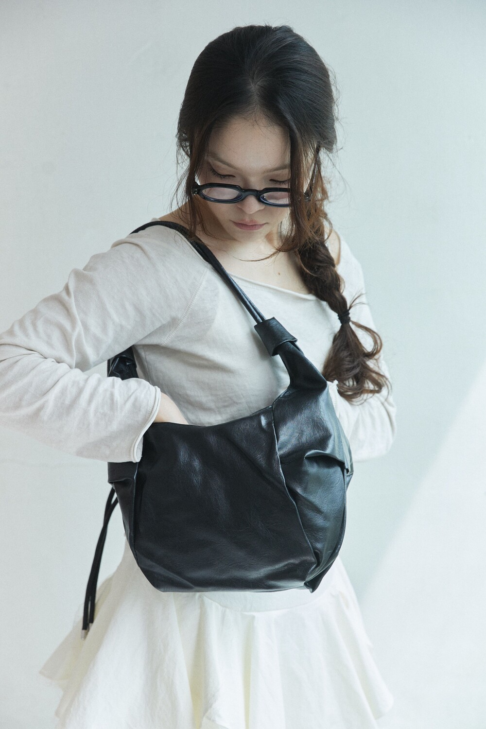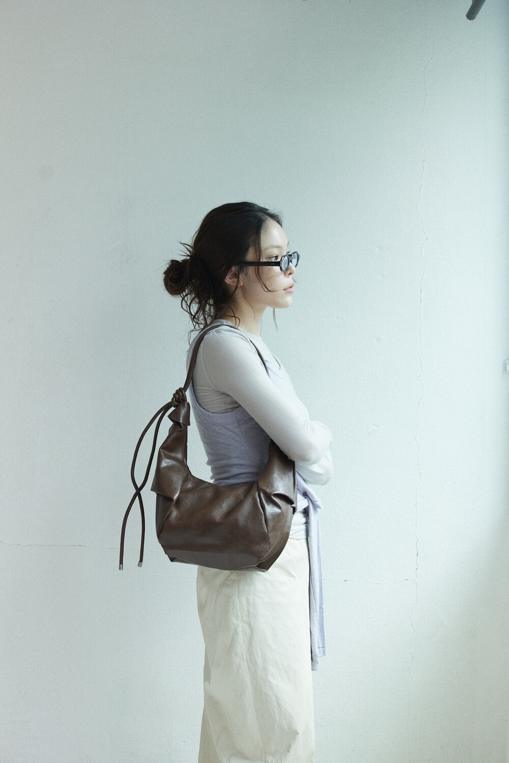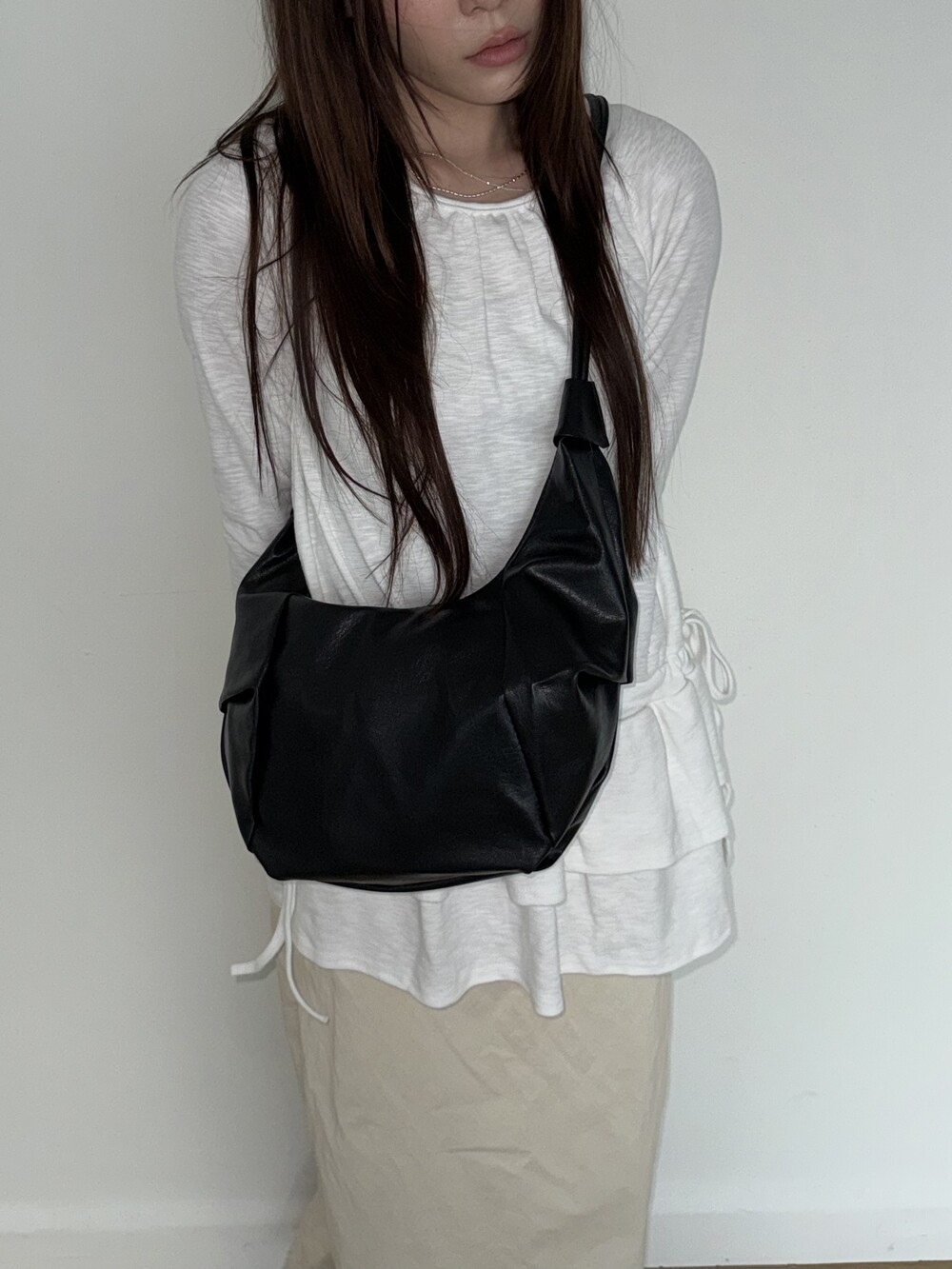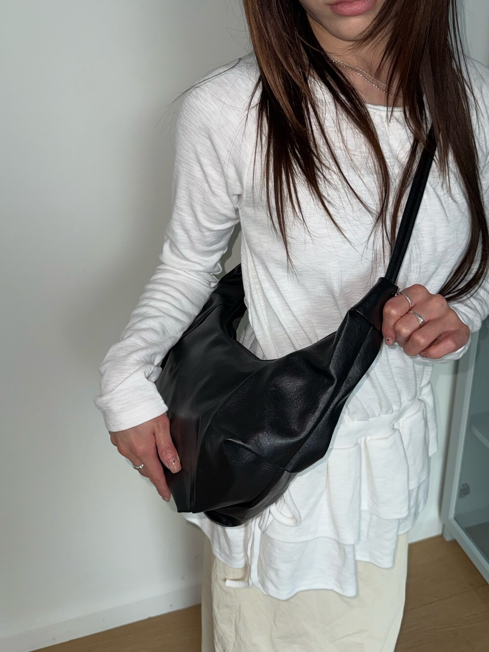 원하는 길이에 맞게 스트랩을 묶어서 크로스백/ 숄더백 으로 착용 가능한 제품입니다:)
