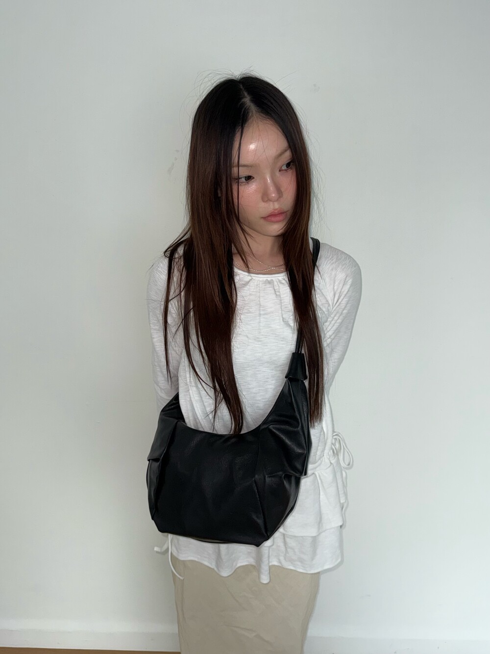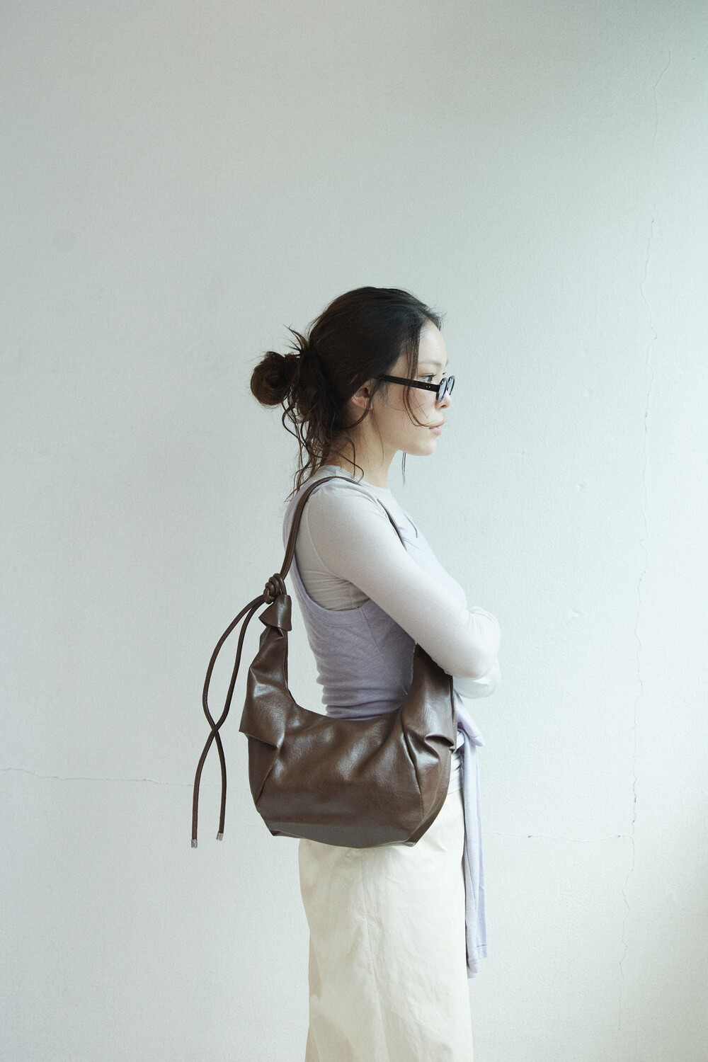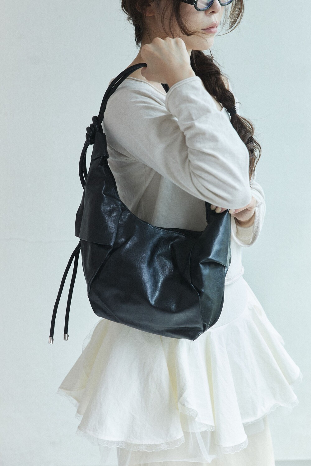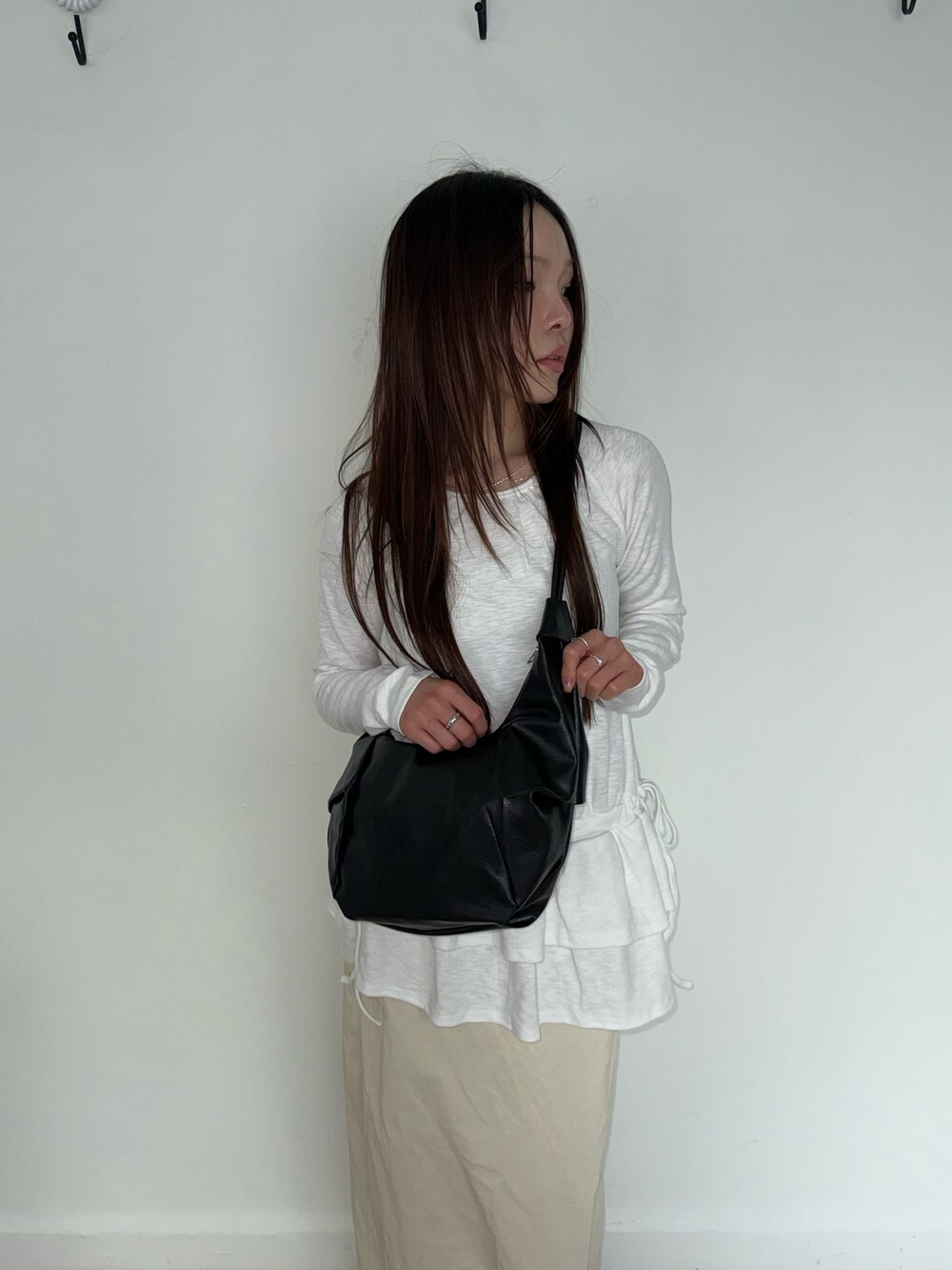 원하는 길이에 맞게 스트랩을 묶어서 크로스백/ 숄더백 으로 착용 가능한 제품입니다:)