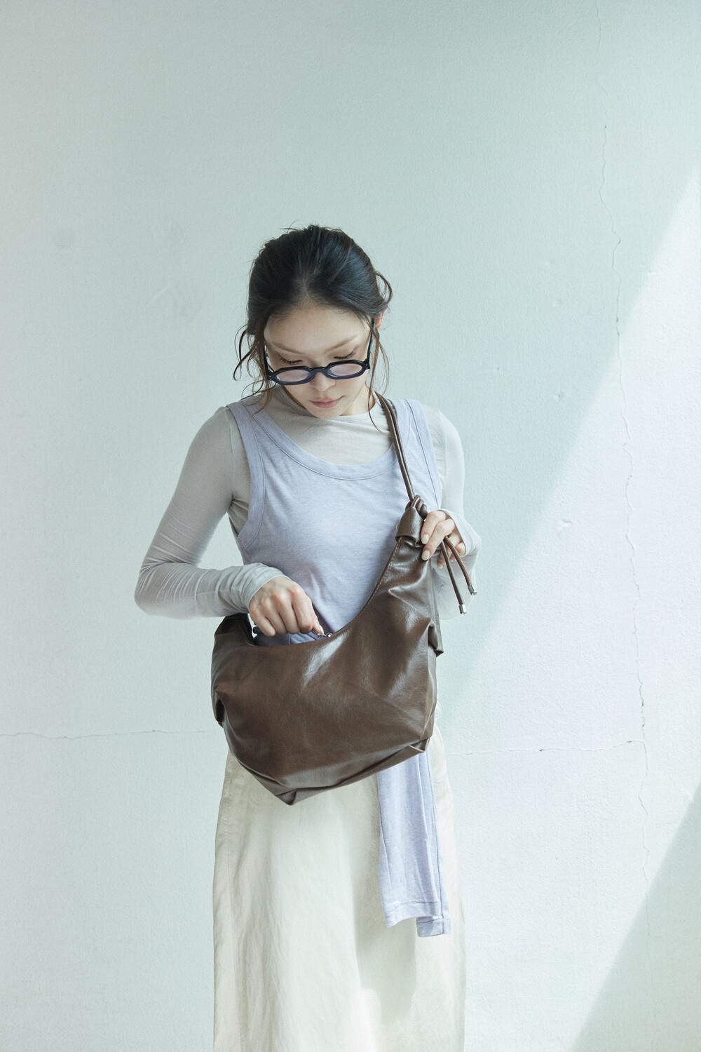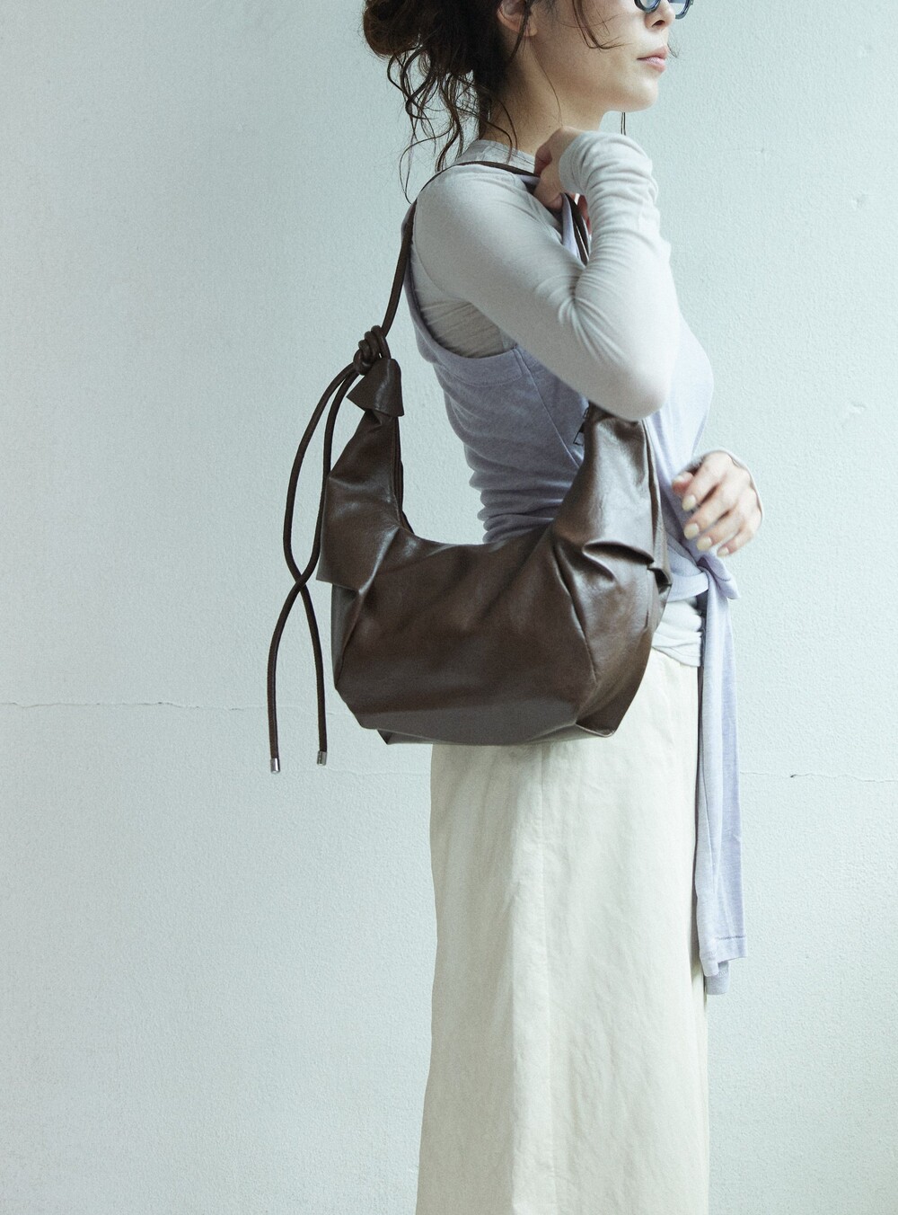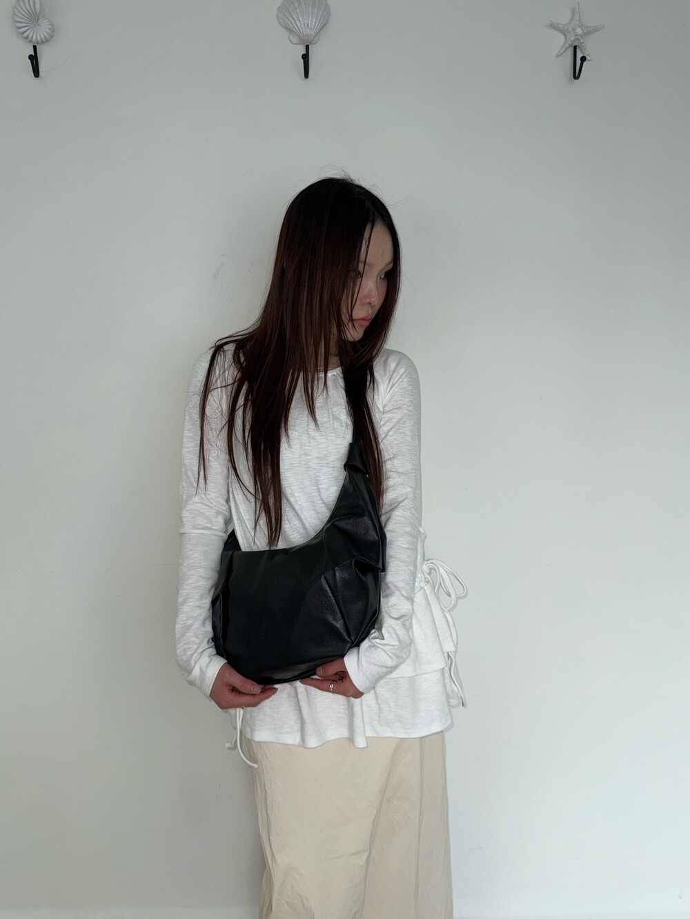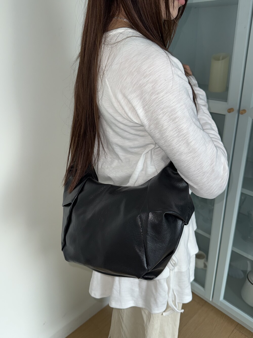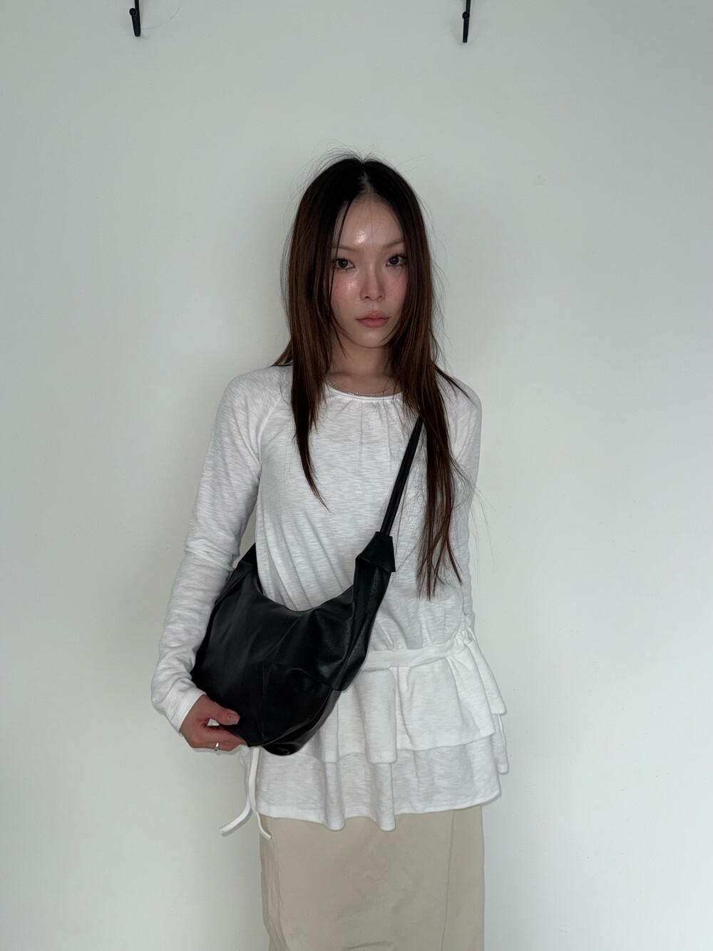 원하는 길이에 맞게 스트랩을 묶어서 크로스백/ 숄더백 으로 착용 가능한 제품입니다:)