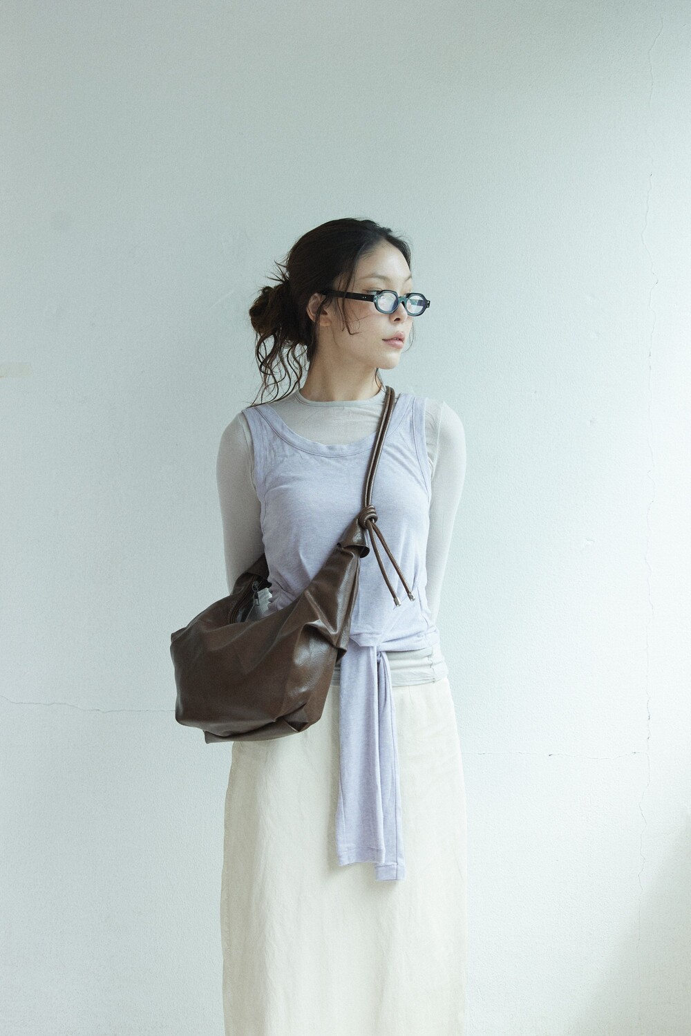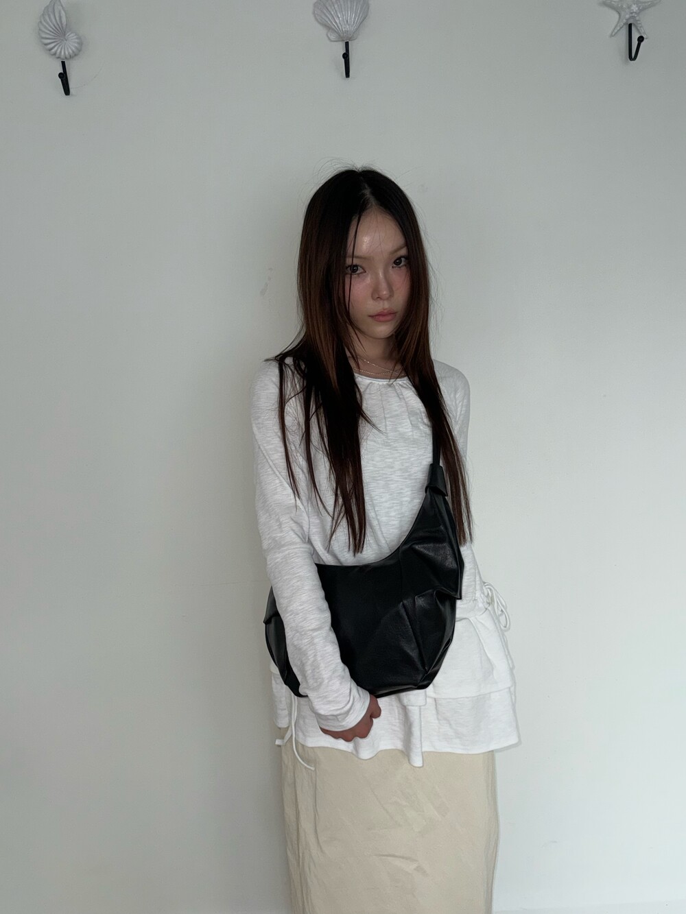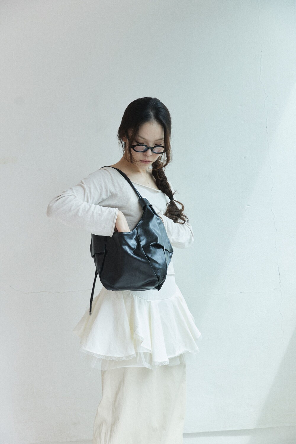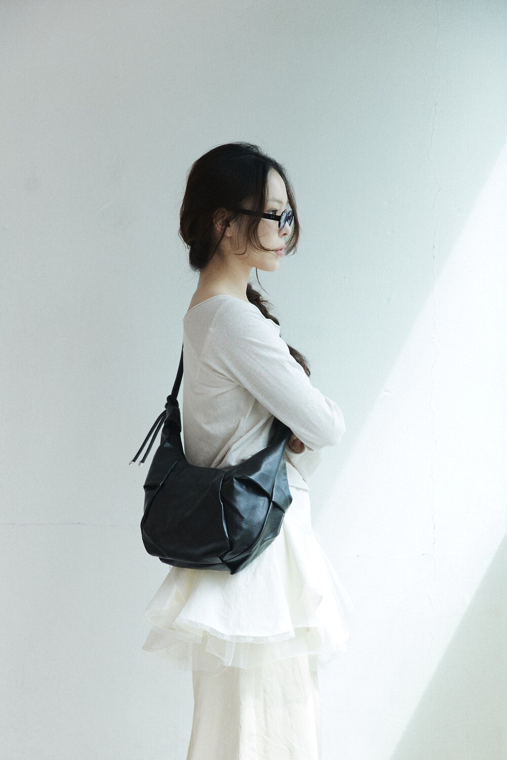 원하는 길이에 맞게 스트랩을 묶어서 크로스백/ 숄더백 으로 착용 가능한 제품입니다:)