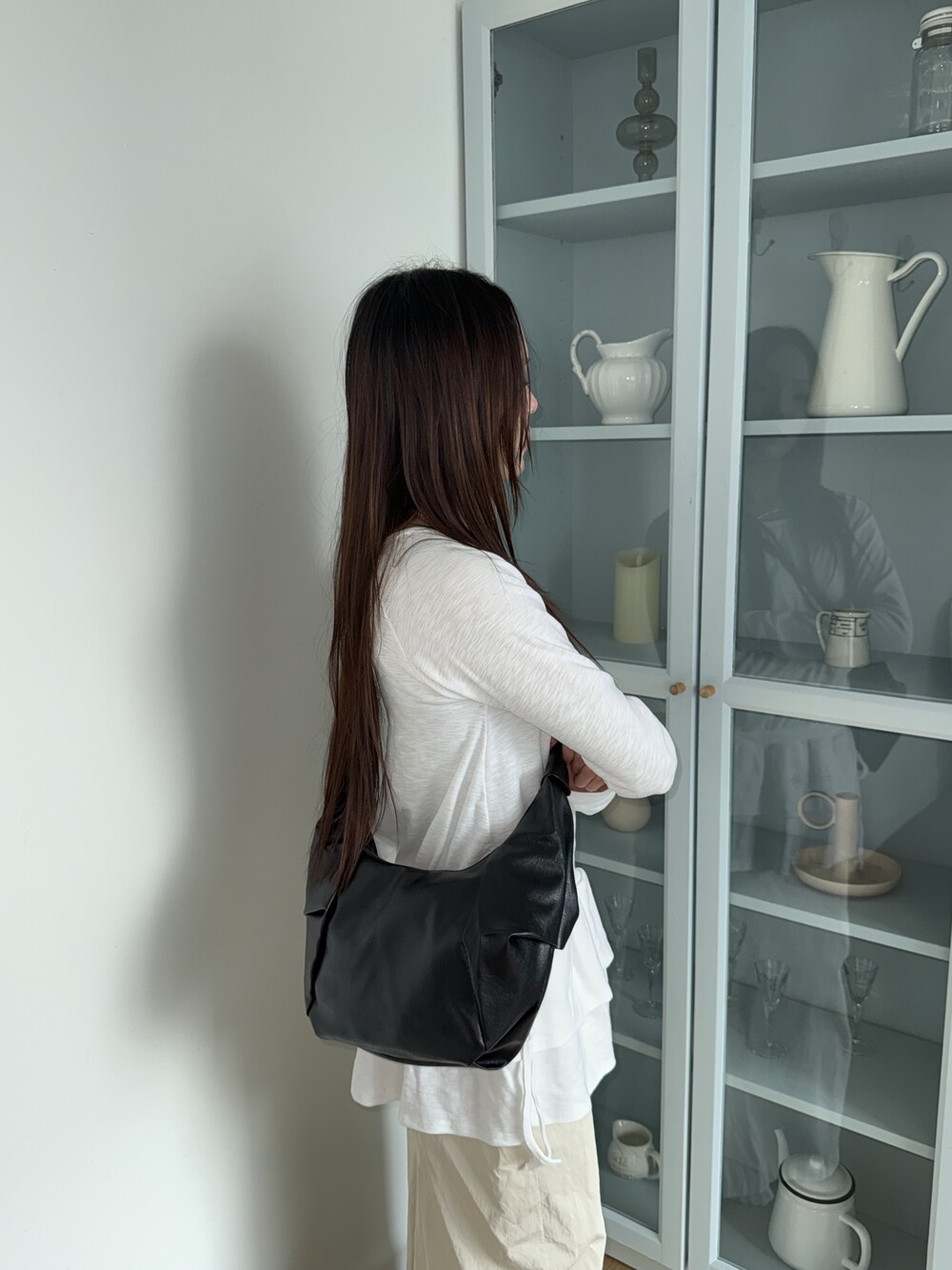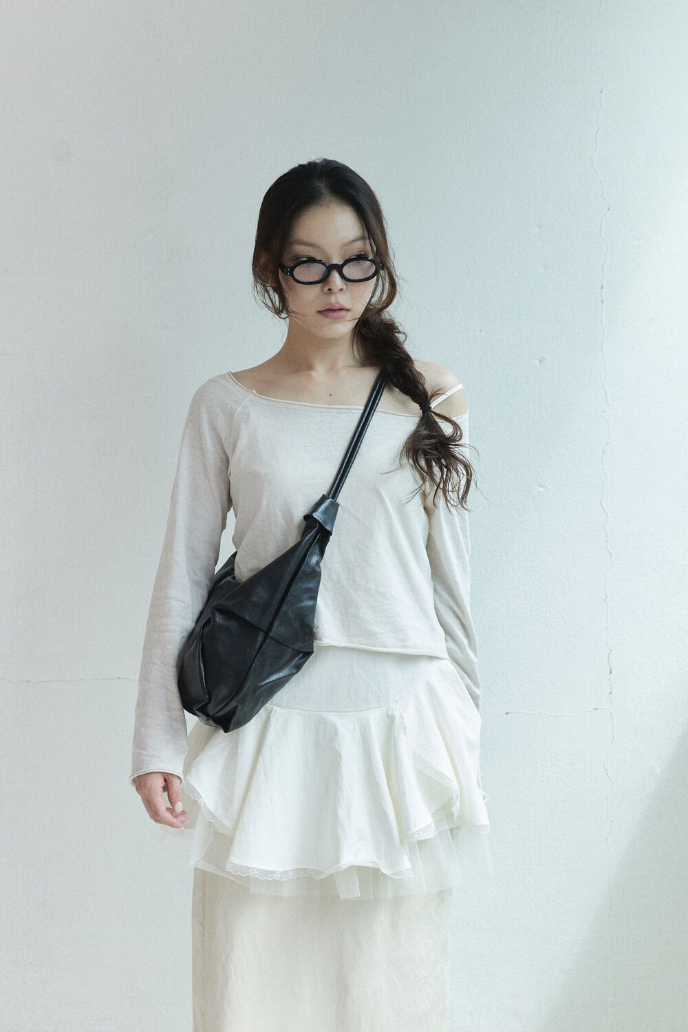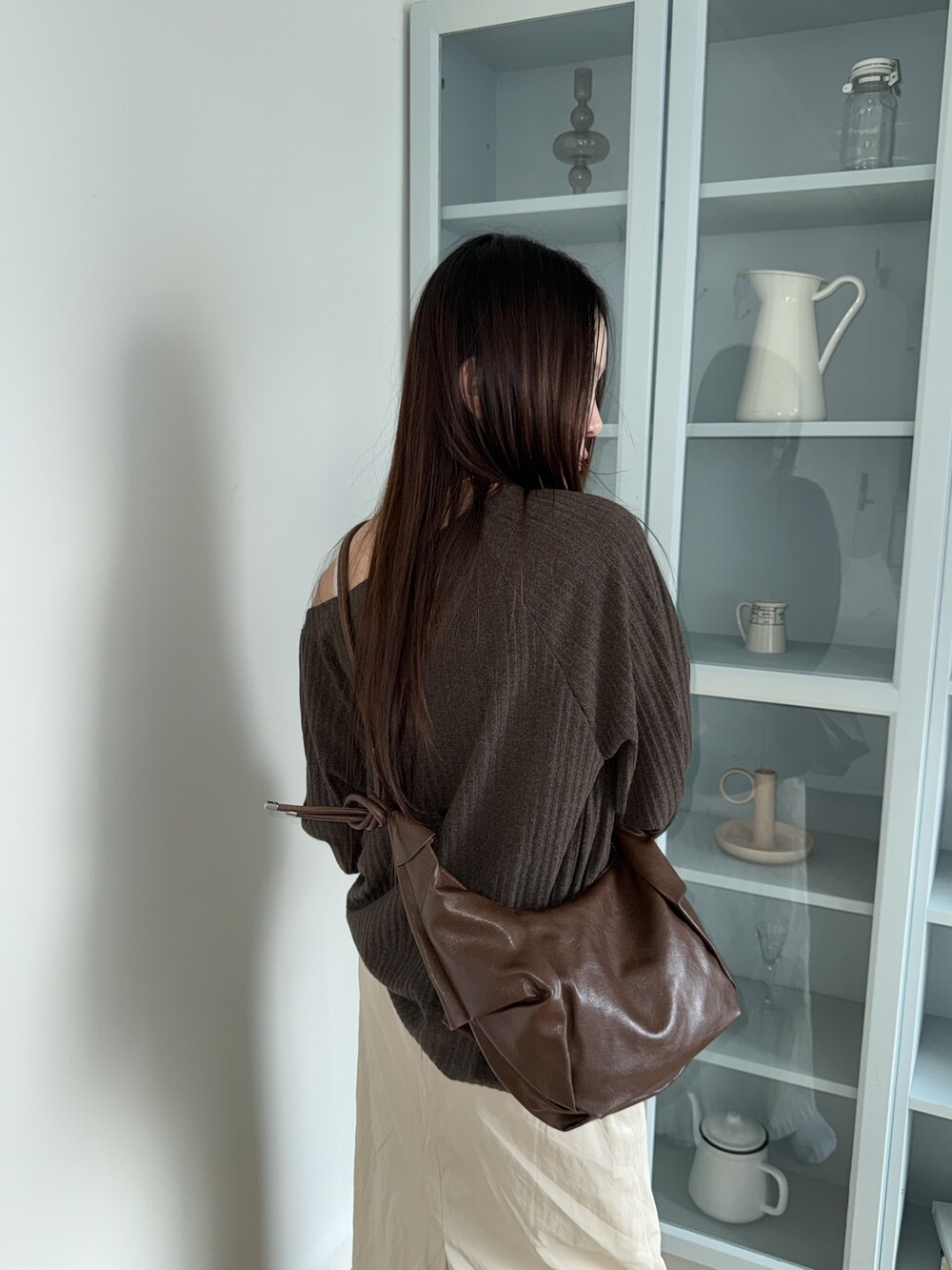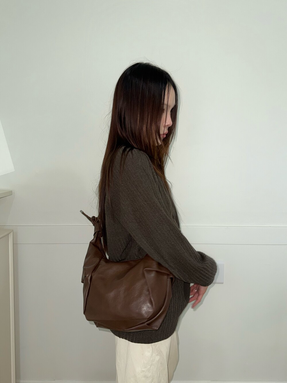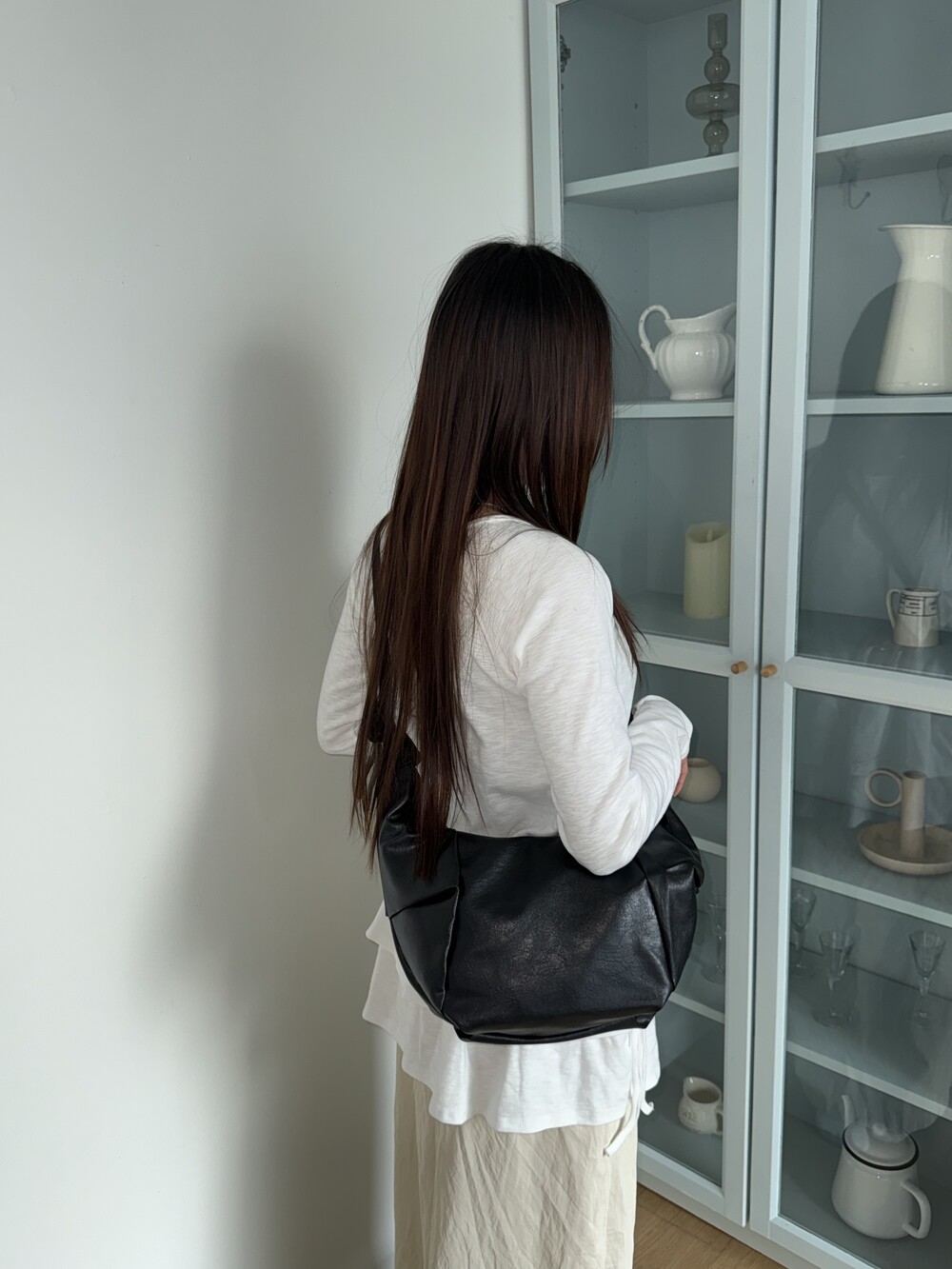 원하는 길이에 맞게 스트랩을 묶어서 크로스백/ 숄더백 으로 착용 가능한 제품입니다:)