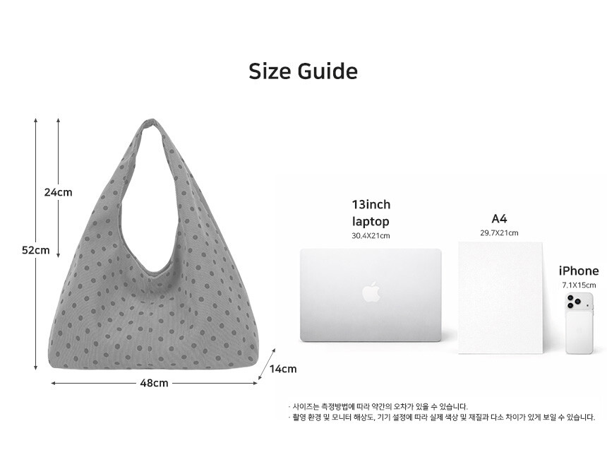 - 사이즈 측정의 기준 오차 1~3cm정도 발생될 수 있는 점 참고부탁드립니다.