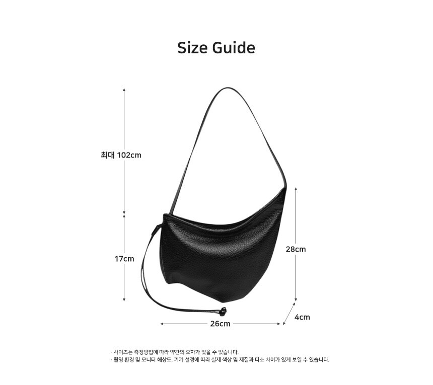 Size : 가로 26cm/높은 세로28cm/낮은 세로 17cm/폭 4cm/어깨끈 최대 102cm